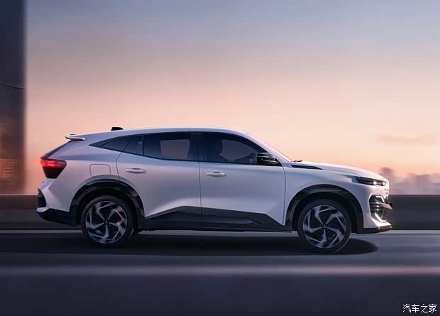 车身侧面来看,新车整体造型设计看上去非常动感。修长的车顶线条延伸至车尾,呈现出快背式的造型设计。车身腰线贯穿侧面,并呈现上提的姿态,前后侧翼子板在腰线的衬托下配合亮黑色的轮眉装饰,形成了宽体的视觉效果,同时异形的Y字形轮圈则凸显了车辆的运动化属性。